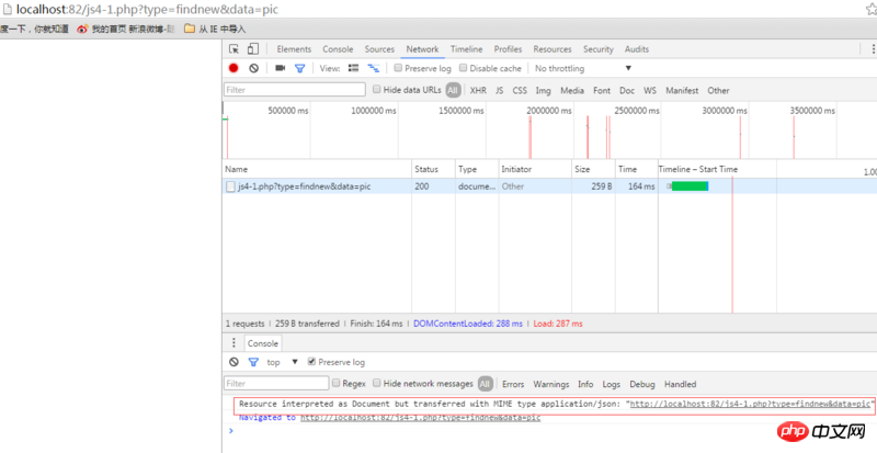 问题如题,我测试数据的时候,浏览器跳出Resource interpreted as Document but transferred with MIME type application/json: "http://localhost:82/js4-1.php?type=findnew&data=pic".的提示,是json数据类型错误了吗?