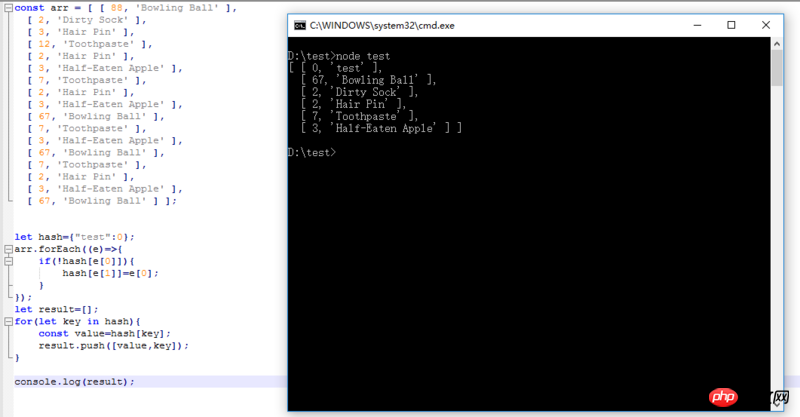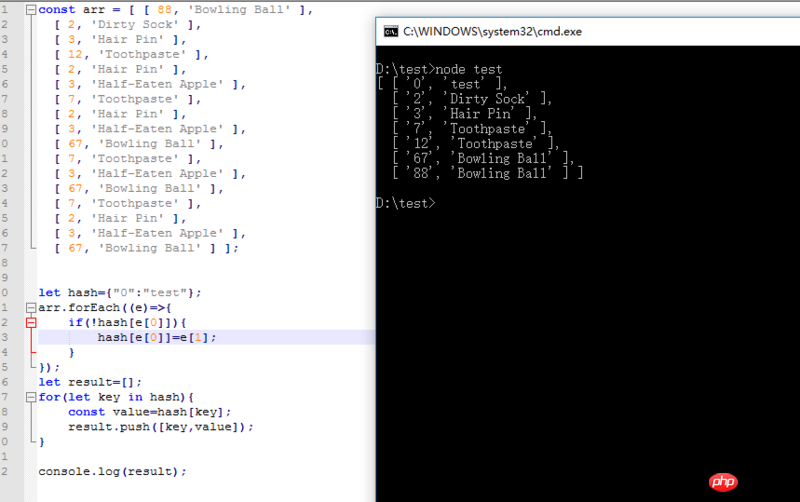 程序的目的是arr[i][1](也就是字符串)去重,并把去重后的结果插入result内,并返回,我的代码如下: