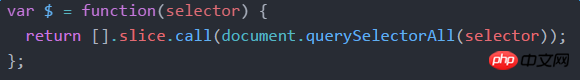 直接return document.querySelector(selector)//得到是一个non-live的 NodeList 类型的对象 [].slice.call()//可以吧一个类数组对象转化为一个数组,这样你数组的API就可以使用了。。