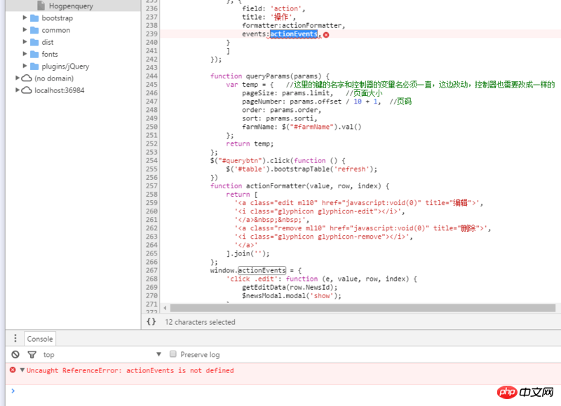 bootstrap table版本1.11.0这里导致整个表格加载不出来,如果上面的events改成events:window.actionEvent,则表格能加载,但点击按钮没反应。