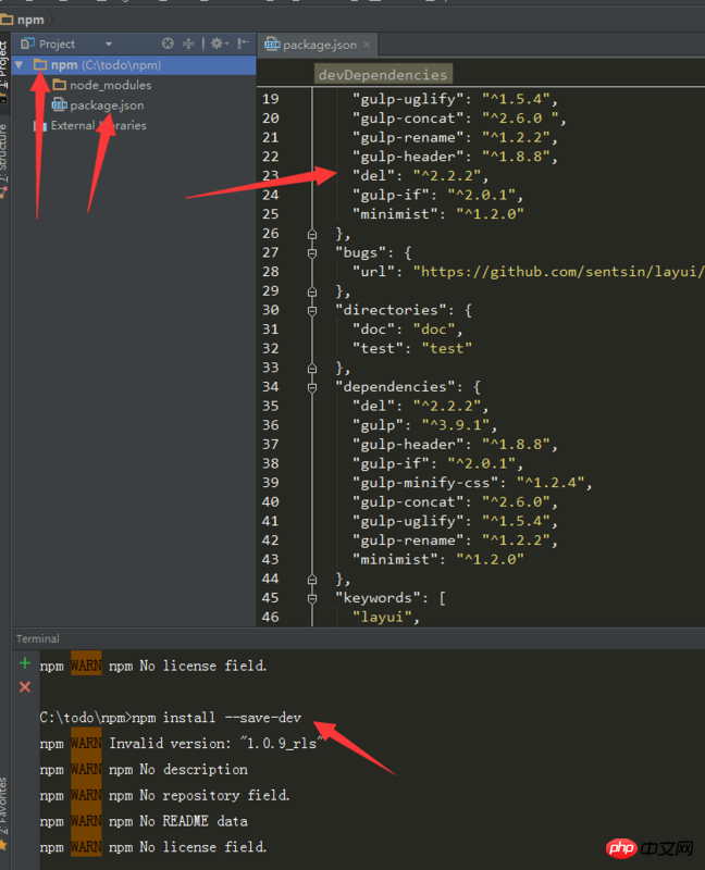 npm install xxx --save-dev,安装xxx包,并将包名添加到package.json中的devDependencies中
