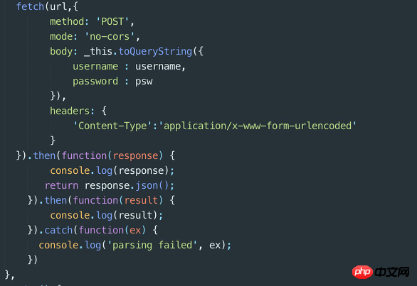 fetch跨域请求登录接口图片1为network里的信息,显示已经返回成功。