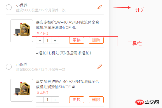 需求: 在点击开关按钮的时候来显示或隐藏相对应下面的工具栏。 列表是通过数据渲染出来的。