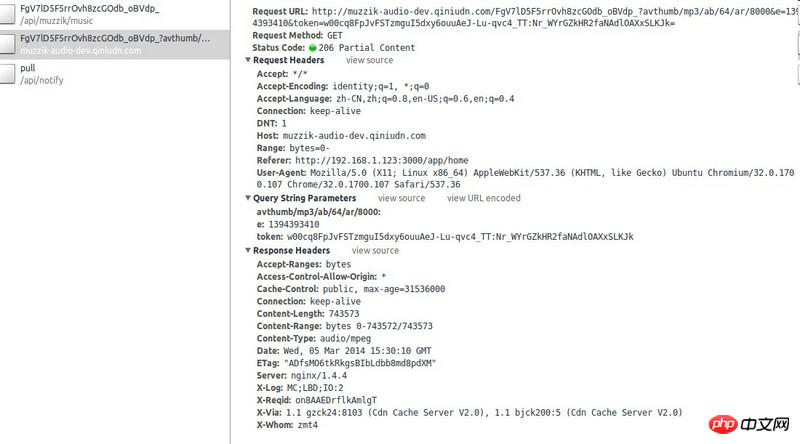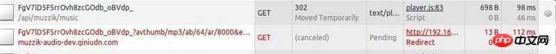 首先会向/api/muzzik/music发送请求,然后会收到302跳转,跳到七牛服务器,七牛会返回数据,并设置head Content-Type:audio/mpeg。