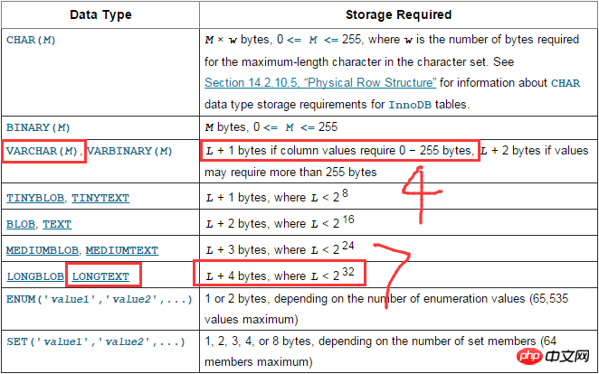LONGTEXT占用3+4个字节