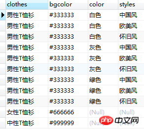 按照你的数据输出了,有9条, 3(style) x 3(color) x 1(tshit) = 9。