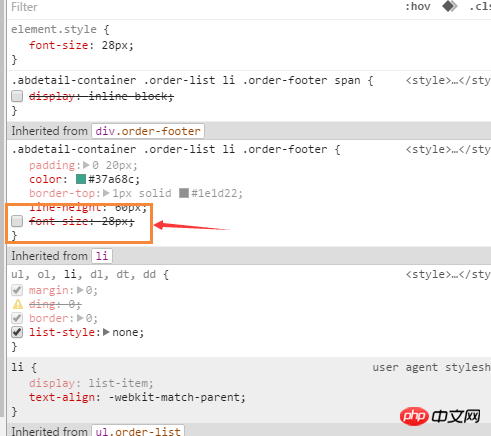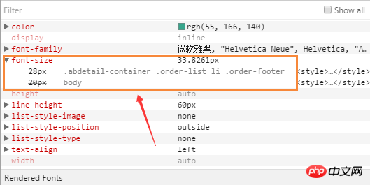 可以看到我只设定了body的20px以及order-footer的28px,但实际作用的是33.8361px,设置过!important也不起作用。