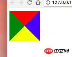 <!DOCTYPE html> <html> <head> <meta charset="utf-8" /> <title></title> </head> <style type="text/css"> p { width: 0px; height: 0px; border-top: 50px solid red; border-right: 50px solid blue; border-bottom: 50px solid yellow; border-left: 50px solid green; } </style> <body> <p> </p> </body> </html>