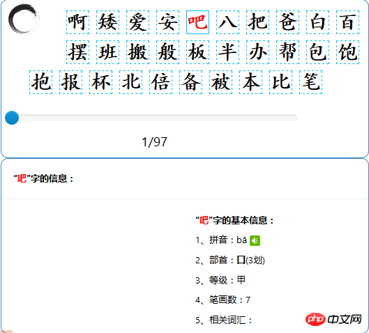 像下面这种的,点击汉字下面出现不同的信息,然后点击拼音信息后面的“小喇叭”图标,实现播放声音。