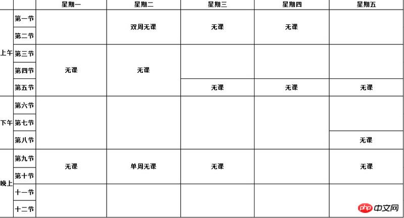 首先上张笔者大学时的无课表: