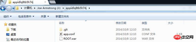 这里我选择的是使用git,复制git地址使用clone命令先把项目拷贝下来:git clone https://git.duapp.com/appidlq8tb5h74j,看到ROOT.war没,到你的本地的Tomcat -> webapps 目录里拷贝你的工程到appidlq8tb5h74j目录.