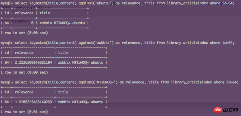 图片展示了对于title的全文索引结果,title里有三个词语,其中只有ubuntu表示搜不出来
