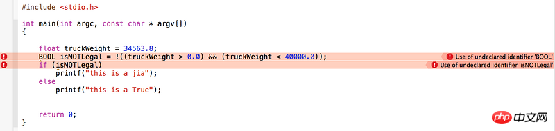 但我在xcode里输入后,显示错误(红色惊叹号):use of undeclared identifier 'BOOL'