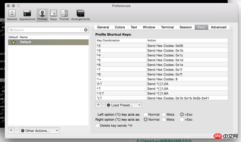 你需要改一下iTerm的设置 option + Esc。我把左边的按键设置为这样的,看一下图。