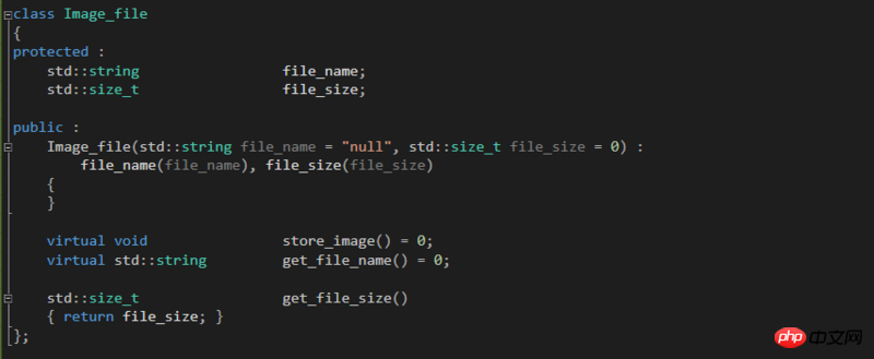 当你在抽象基类的get_file_name()函数声明后面添加上const以后,这个函数内的this指针就从Image_file *const类型变成了const Image_file *const类型,此时return file_name + std::string(".gif");里的成员file_name是通过常量类型的this指针调用的。从而满足了上述要求。