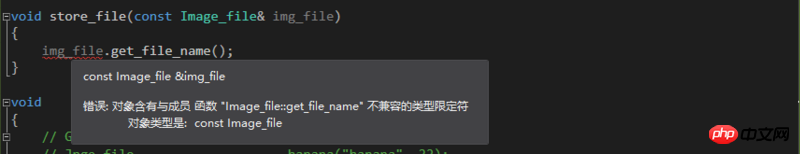 在store_file()函数内,其参数img_file是一个常量引用类型,想要通过一个常量对象调用成员函数,就需要这个对象的成员函数的this指针也是常量类型。