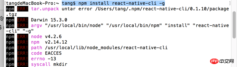 该命令报错tang$ npm install react-native-cli -g