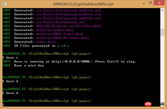 本地和git上也都有ssh,然后执行hexo d就是没有反映啊!执行后等一秒还是原来的界面..求解!