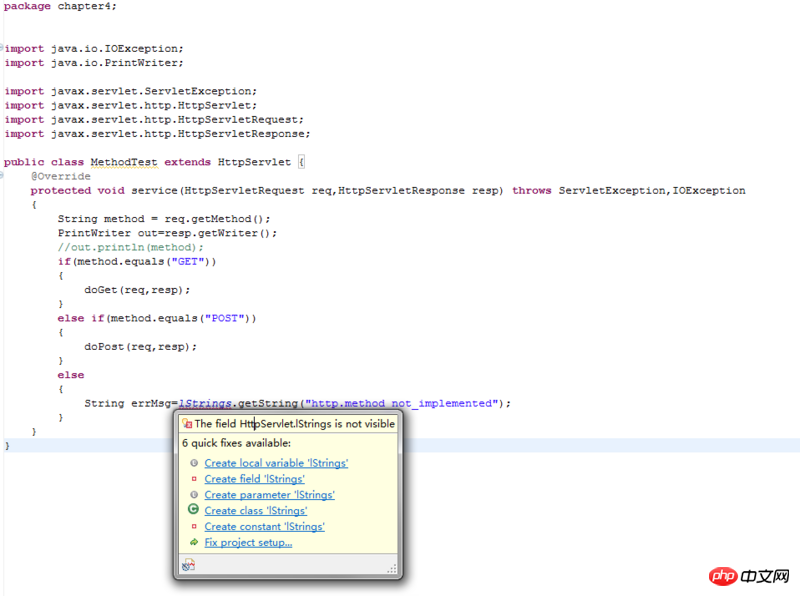 lStrings是HttpServlet类下面的一个private属性,无法被子类调用,关于private,protected,(default),public的知识,请参考Thinking in Java中的Access Control一章。