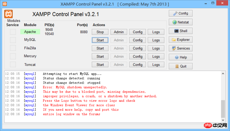 引用stackoverflow上一个和我同样问题(http://stackoverflow.com/questions/18022809/xampp-mysql-shutdown-unexpectedly)的哥们儿一句话:
