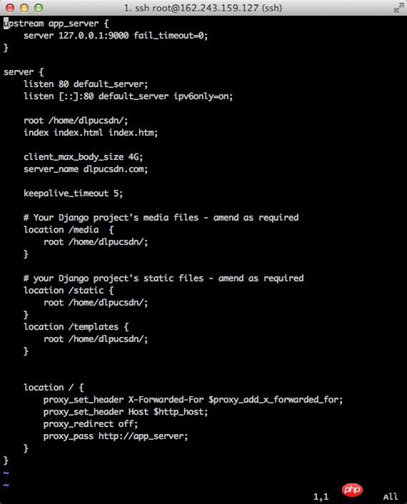 nginx的配置如下,我在runserver 12.23.34.45:80之后就会出现That port is already in use,但是不知道是怎么占用了80端口,必须要手动fuser -k 80/tcp,还是觉得nginx的配置有问题,而且现在访问的话网站还没有样式,到底哪里错了%>_<%,前两个图是nginx.conf,最后一个是sites-enable文件夹里的配置文件。