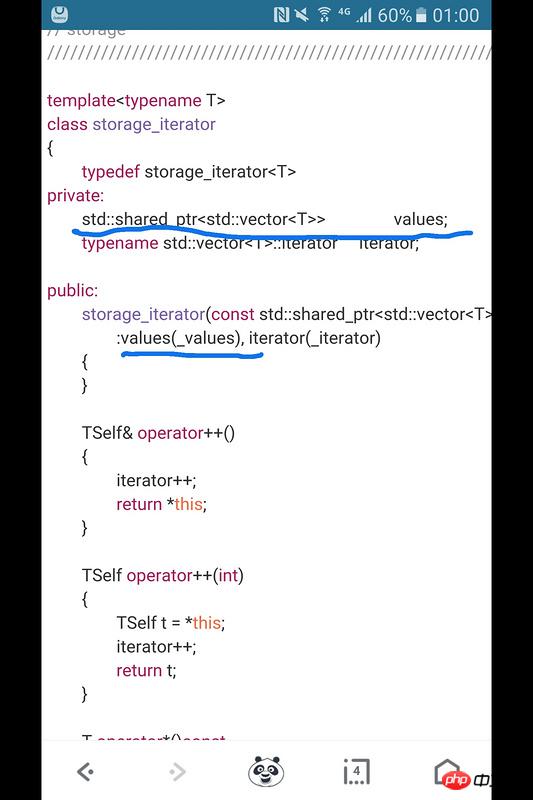 这和std::shared_ptr的机制有关,这里values 保存了一个vector的引用,storage_iterator 析构之后会释放。保存这个引用可以保证只要storage_iterator存活,iterator绑定的引用对象(values)也一定还存活。