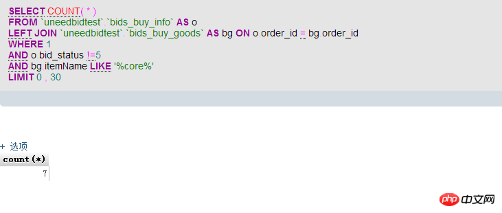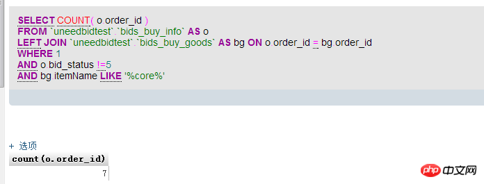 这两个查询,一个返回1,一个返回7,我想查询的返回结果是5,即希望buy_info表为主表,排除相同的order_id,请问应该怎么写count语句?