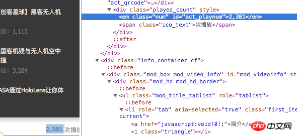 在学习用casperjs抓取网页,要抓取的是http://v.qq.com/page/k/9/2/k0188qdxy92.html这个页面上的播放次数,如图所示: