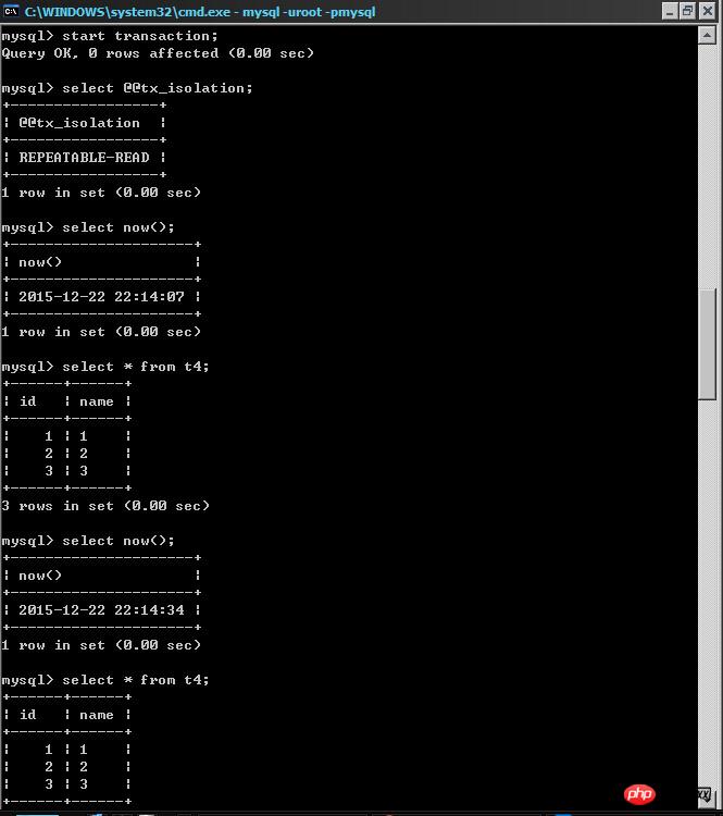 根据书上所说的,REPEATABLE READ 可以保证在一次事务中,相同查询得到结果是一致的,但是我做了一些测试,貌似跟书上结论不同。