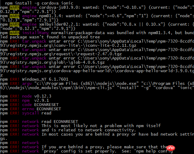 想要在电脑上装ionic结果一直报错,不知道为什么,错误信息如下