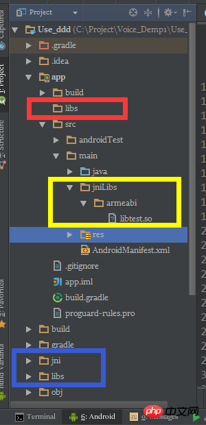 红色是自己生成的,蓝色是ndk-build生成的,黄色是最后加的,到底什么和什么关系啊