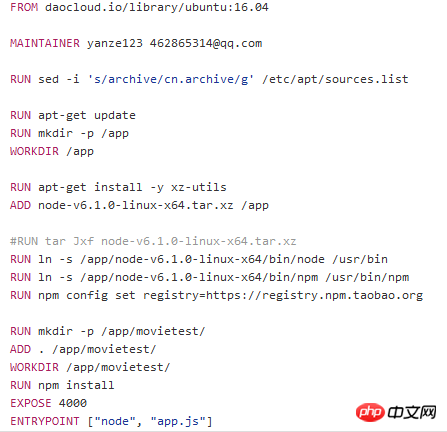 在daocloud上跑我的nodejs项目遇到Dockerfile