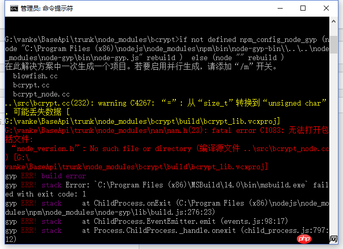 应该是你的包需要 编译 c++文件你看看Windows怎么构建node的c++编译环境装个虚拟机吧 Windows玩node还是算了吧