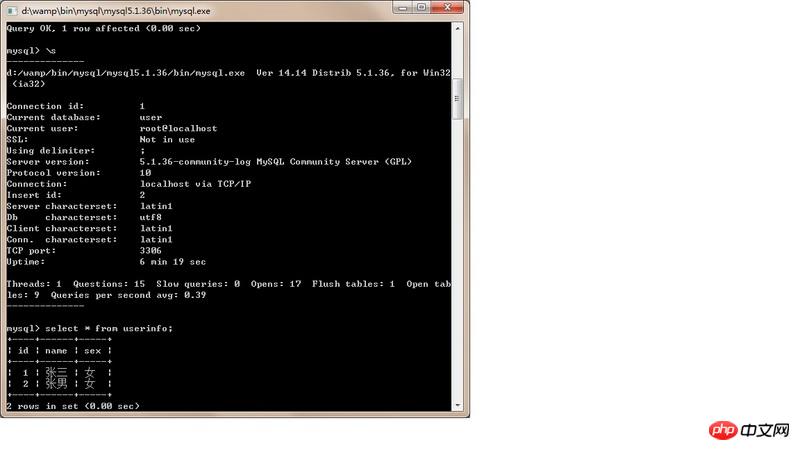 RowDataPacket { id: 2, name: 'ÕÅÄÐ', sex: 'Å®' } ]
