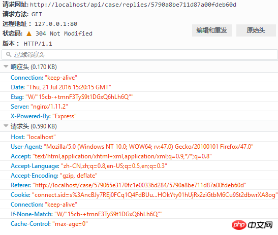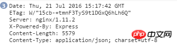 服务器使用expressjs,默认设置,只添加了etag,返回的http header在调试工具里是这个样子的