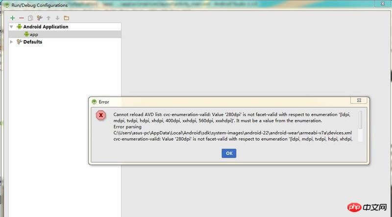 Error parsing C:\Users\asus-pc\AppData\Local\Android\sdk\system-images\android-22\android-wear\armeabi-v7a\devices.xml: cvc-enumeration-valid: Value '280dpi' is not facet-valid with respect to enumeration '[ldpi, mdpi, tvdpi, hdpi, xhdpi, 400dpi, xxhdpi, 560dpi, xxxhdpi]'. It must be a value from the enumeration.