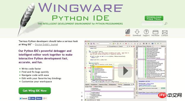 Wingware 的 Python IDE 兼容 Python 2.x 和 3.x,可以结合 Django, matplotlib, Zope, Plone, App Engine, PyQt, PySide, wxPython, PyGTK, Tkinter, mod_wsgi, pygame, Maya, MotionBuilder, NUKE, Blender 和其他 Python 框架使用。Wing 支持测试驱动开发,集成了单元测试,nose 和 Django 框架的执行和调试功能。Wing IDE 启动和运行的速度都非常快,支持 Windows, Linux, OS X 和 Python versi。