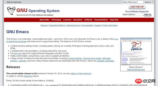 GNU Emacs 是可扩展,自定义的文本编辑器,甚至是更多的功能。Emacs 的核心是 Emacs Lisp 解析器,但是支持文本编辑。如果你已经使用过 Vim,可以尝试一下 Emacs。