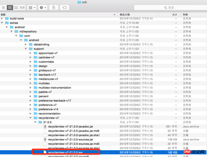 然后将class.jar重命名为android-support-v7-recyclerview.jar