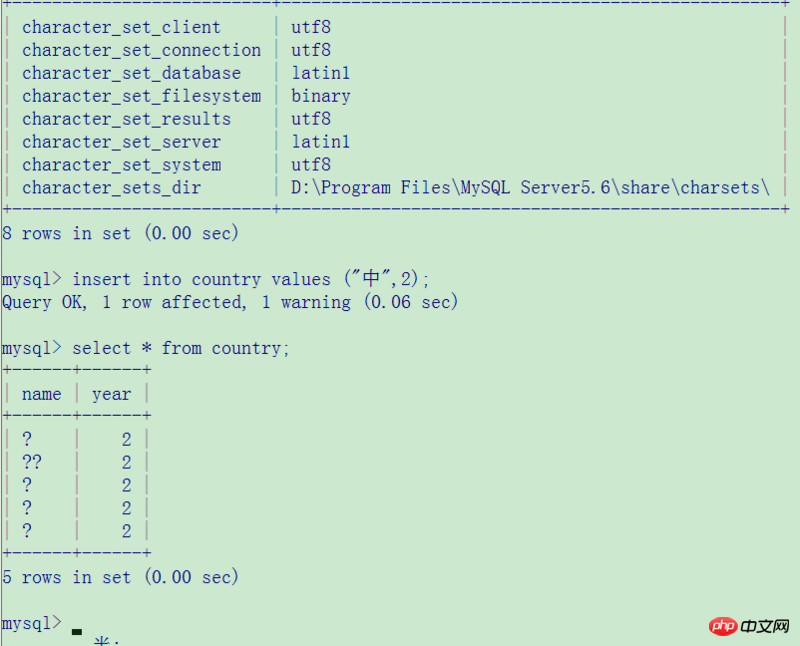 如下面两张图,全部将character_set_client , character_set_connection 和 character_set_results 设为 gbk 或 utf8 均是乱码,这到底是怎么回事啊?