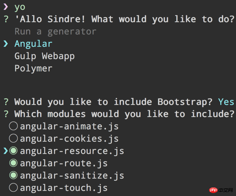 yo:通过Inquirer.js这个库来实现,点击传送门