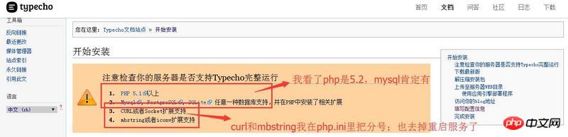 4、这是从typecho官网文档里看的安装条件貌似也符合