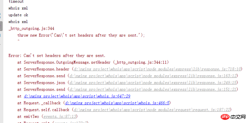 第一感觉 header已经发送出去了,然后你的回调里面掉send的时候在204和304的时候会修改header,给出部分代码看看