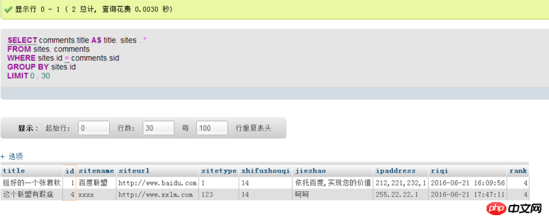 现在想查找sites里面的所有数据,如果对应的这条数据在comment里有相关的评论(sites.id=comments.sid),就把最新的一条相关评论标题(comment.title)作为一个附加的字段提现在查询结果里