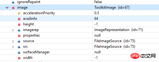 height 和 width 全都是-1 ,而我这里不管写什么,不管是 java 内置的 icon.gif 还是我已在类目录下放置的自己的 gif ,还是绝对路径,全都无效,统统都是这个 ToolkitImage ,可既然加载错了,那就 null 啊,这顶个-1 害的后面的程序全爆炸了(