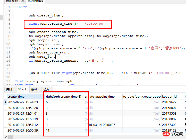 select right(oph.create_time,8) - '09:00:00' from xxxxx,