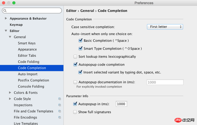 Preference -> Editor -> General -> Code Completion 按喜好设置,我用的是默认设置。