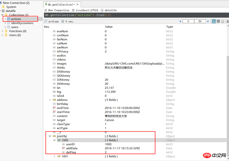 如图,我建立了一个action表,想查找里面子对象joinObj的子对象id为1000的action对象。大概知道是使用type方法查询,具体应该怎么做呢?
