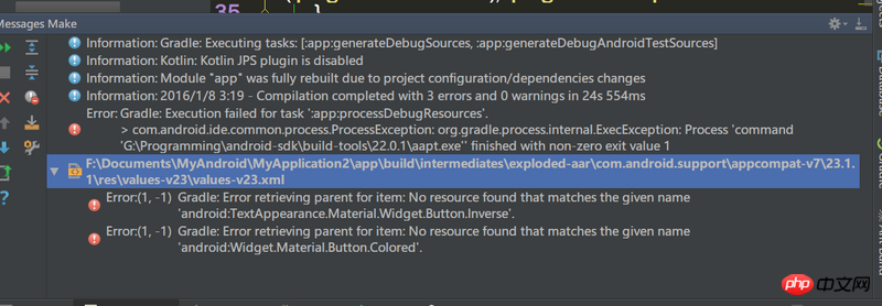 是这样的,buildToolsVersion "22.0.1"版本和compile 'com.android.support:appcompat-v7:23.1.1'是匹配的,意思即为你的buildToolsVersion版本为22,就应该设置support:appcompat包围v7:22,所以建议你将buildToolsVersion版本设置为23