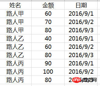 select name,sum(money) from table group by name说句题外话,日期为什么不用时间戳,好有强迫症?
